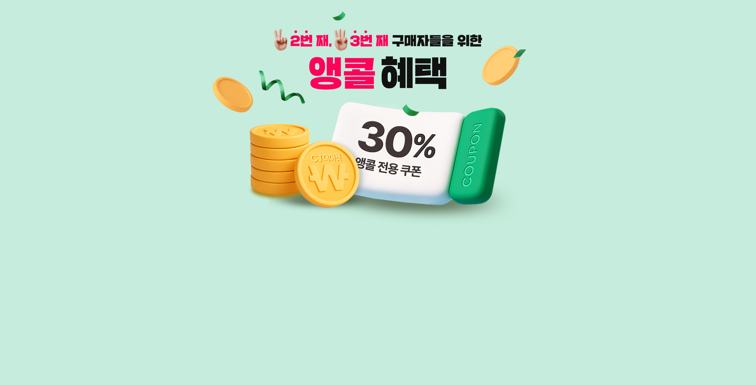앵콜혜택 전용 쿠폰은 첫번째, 두번째 구매 후 배송완료 된 고객만 발급 가능합니다.