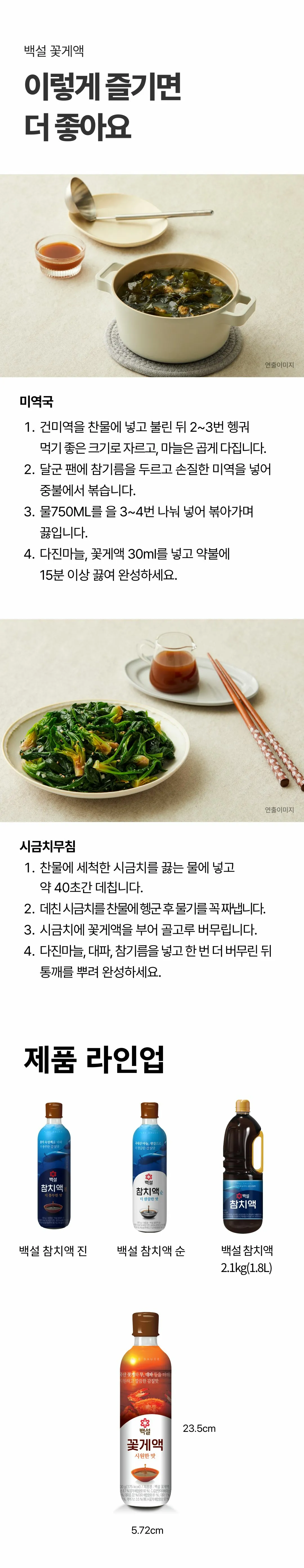 관련 기획전상품 정보 고시배송안내취소/교환/반품 안내상품 Q&A상품 관련 궁금하신 사항이 있으면 궁금하신 점을 문의해 주세요.고객님의 질문에 정성껏 빠르게 답변해 드리겠습니다. 작성해주신 문의내역 및 답변은 마이페이지활동정보1:1 문의내역 메뉴에서 확인 가능합니다. 문의하기카테고리양념/장류/오일/다시다다시다/조미료/육수