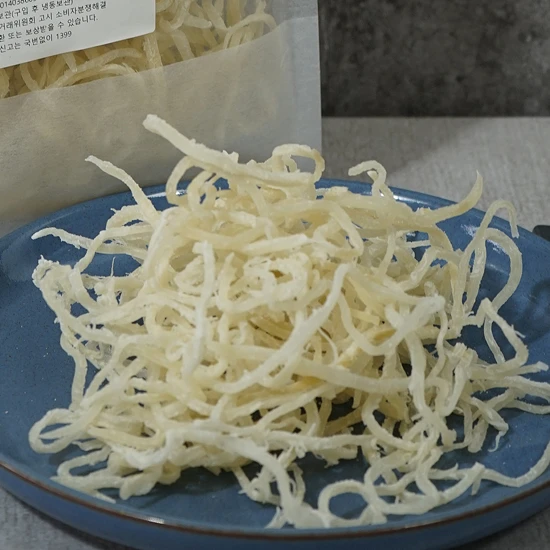 페루에서 잡은 오징어를 국내에서 가공하여 품질과 식감을 높인 백진미 오징어채는 부드러운 식감과 향상된 맛을 제공합니다.