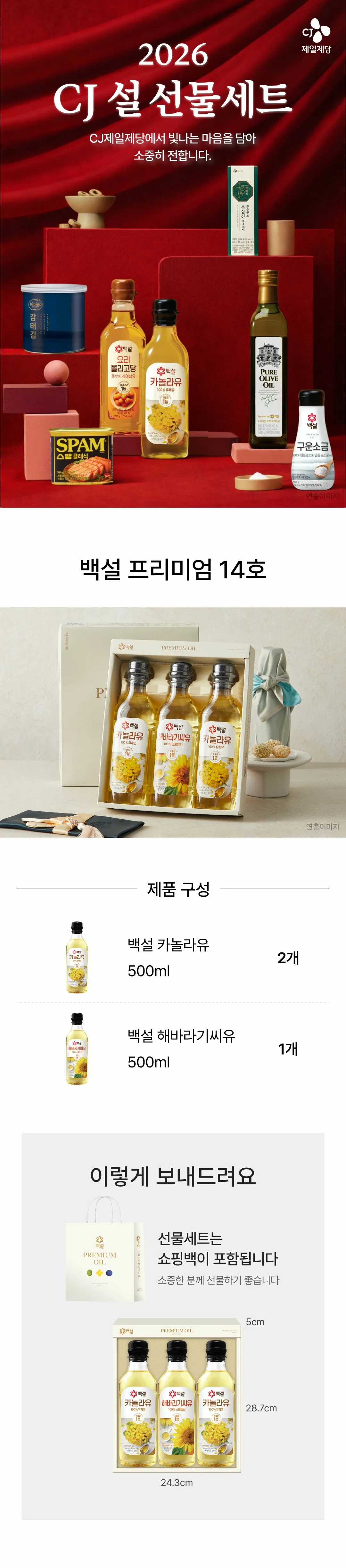 관련 기획전상품 정보 고시배송안내취소/교환/반품 안내상품 Q&A상품 관련 궁금하신 사항이 있으면 궁금하신 점을 문의해 주세요.고객님의 질문에 정성껏 빠르게 답변해 드리겠습니다. 작성해주신 문의내역 및 답변은 마이페이지활동정보1:1 문의내역 메뉴에서 확인 가능합니다. 문의하기카테고리일반선물세트백설유/참기름