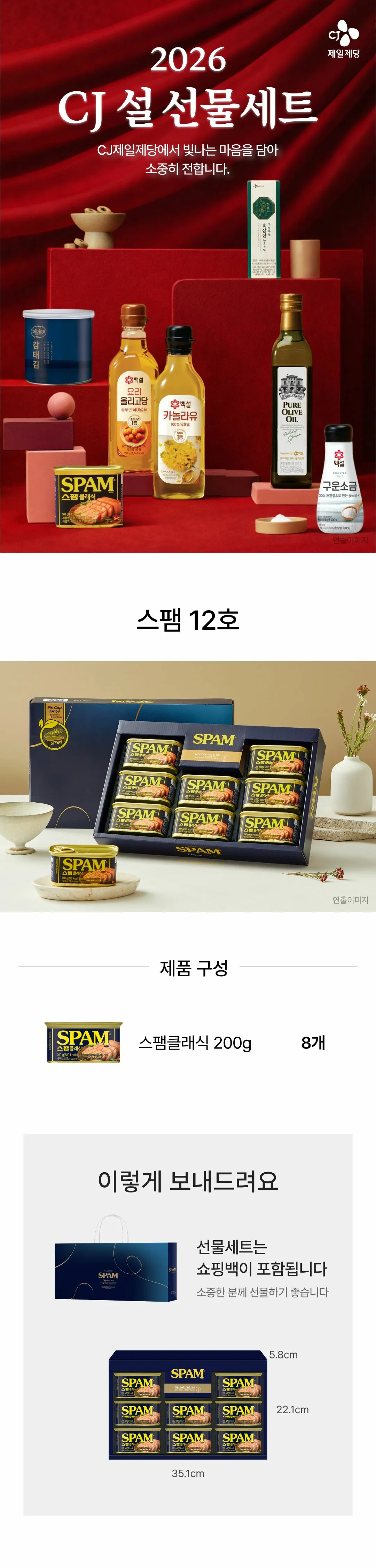 관련 기획전상품 정보 고시배송안내취소/교환/반품 안내상품 Q&A상품 관련 궁금하신 사항이 있으면 궁금하신 점을 문의해 주세요.고객님의 질문에 정성껏 빠르게 답변해 드리겠습니다. 작성해주신 문의내역 및 답변은 마이페이지활동정보1:1 문의내역 메뉴에서 확인 가능합니다. 문의하기카테고리일반선물세트스팸/스팸고급유