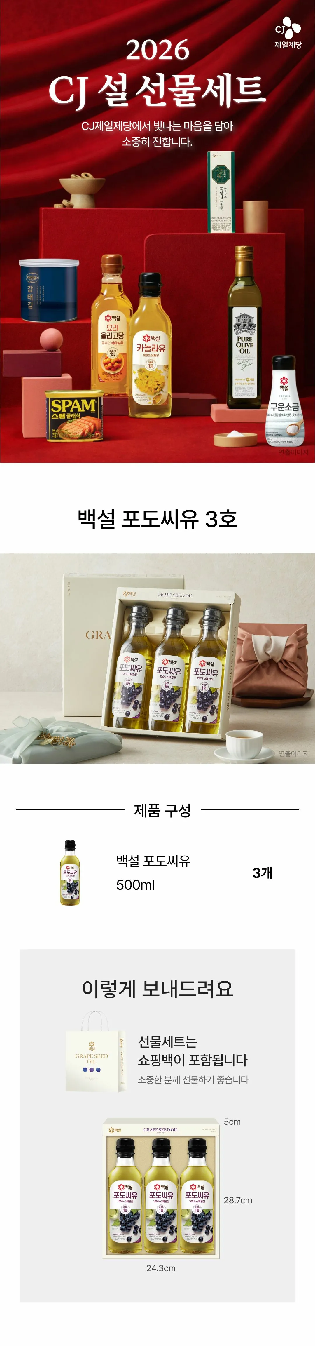 [26설선물세트대량구매] 백설 포도씨유 3호