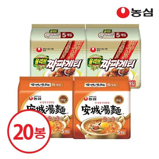 농심 라면 20봉(안성탕면10, 짜파게티10)